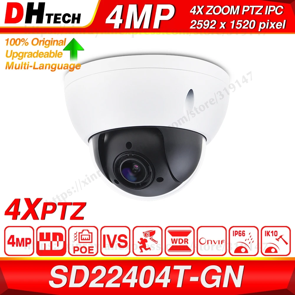 Flash Sale Dahua Original SD22404T-GN 4MP POE 2.7~11mm 4X Zoom PTZ H.265 WDR ICR IVS Face Detect IP66 IK10 Onv